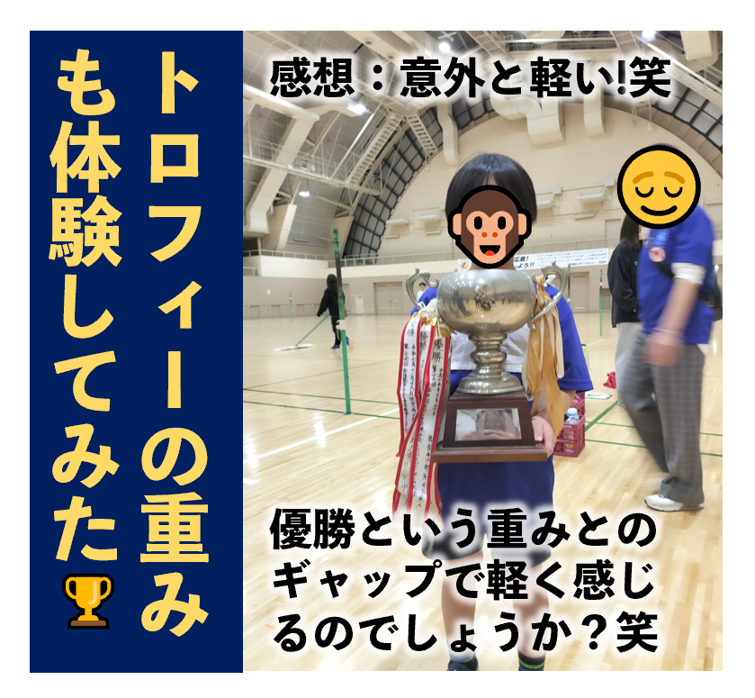 小学1年生の娘さんは、保育園時に特に習い事をしたことがありませんでした(ピアノや水泳に興味を持ったことはありましたが、如何せん小心者で、踏み出せなかった過去あり)しかし小学生になり、時間を持て余す初めての夏休みを経験し、ソフトバレーへ通うようになりました。積極的に練習へ参加し、そして先日、初めての公式戦へ!!試合は着々と勝ちを重ね、終わってみると全試合負けなしで低学年の部を優勝することができました。練習の成果が発揮でき、それが結実する。良い経験となりましたし、自信に繋がればと思います。何よりもこの大会を楽しみにし、実際に楽しく行えたことが観ている人を笑顔にしてくれました。